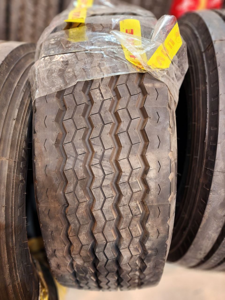 لاستیک 385/65R22.5 رودشاین یک تایر سنگین، پهن و مقاوم مخصوص محورهای جلو یا تریلرهای یدککش (تریلری) است. این سایز برای حمل بارهای سنگین، حرکت طولانیمدت در جادههای آسفالتی و نیمهخاکی، و پایداری بالا طراحی شده است.